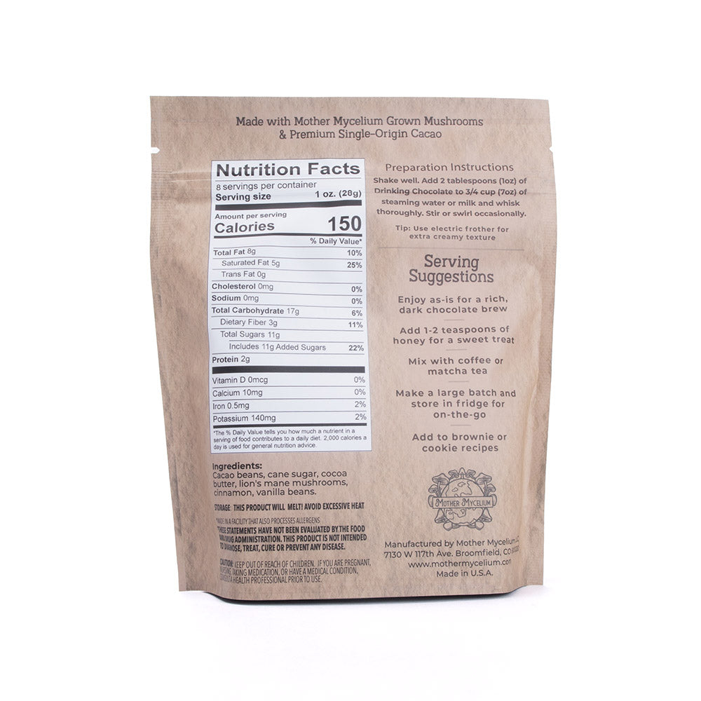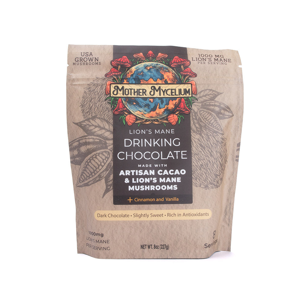 This thoughtfully crafted mushroom brew features rich dark chocolate mixed with cinnamon and unfiltered lion’s mane mushroom extract. Mother Mycelium works with a very special chocolatier that hand crafts the chocolate from high quality cacao grown in Cameroon, Africa. These unique cacao beans are what gives this chocolate it’s complex, fruity flavor. Each serving is packed with 1000 mg of Mother Mycelium Lion’s Mane 1:1 extract and a hint of cinnamon.